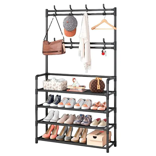 🥾Características: Diseño 3 en 1: ganchos, Zapatero de 4 niveles, le ayuda a organizar bien, Todos los ganchos son móviles, para que pueda ajustarlos a la mejor posición que desee. Es fácil organizar varias prendas, gorras, bolsos, etc.